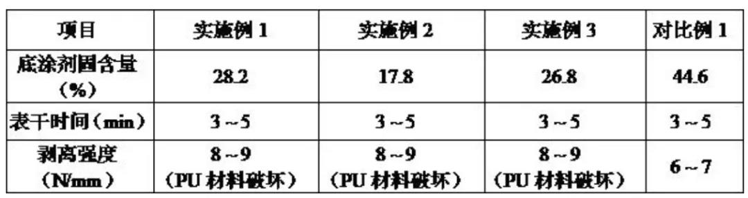 现有技术制备的底涂剂的粘接效果未达到最佳。底涂剂和聚氨酯密封胶或包边料依次施工后,为测得使用底涂剂后的剥离强度,需将聚氨酯密封胶或包边料从玻璃上剥下,并进行90°剥离测试,记录最大拉力值,此为汽车制造厂家进行产品抽检时常用测试方法。若聚氨酯密封胶或包边料无法完整从玻璃上剥下,说明剥离强度大于密封胶或包边料本身的强度,无法测得真实剥离强度,即为最佳粘接效果。