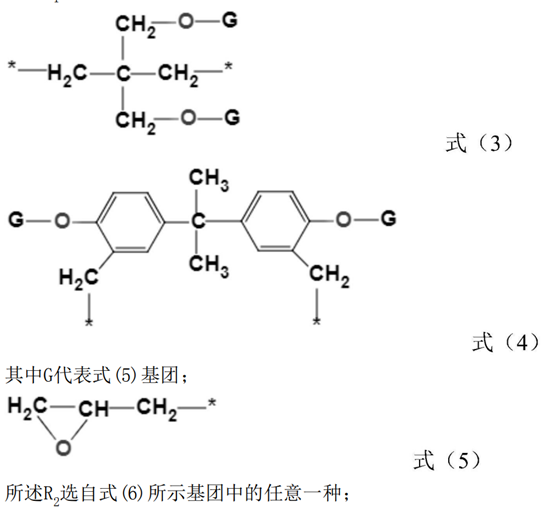 式(6)中,M1、M2、M3中任意两个选自具有式(7)所示基团中的任意一种,剩余一个选 自式(8)所示基团中的任意一种;